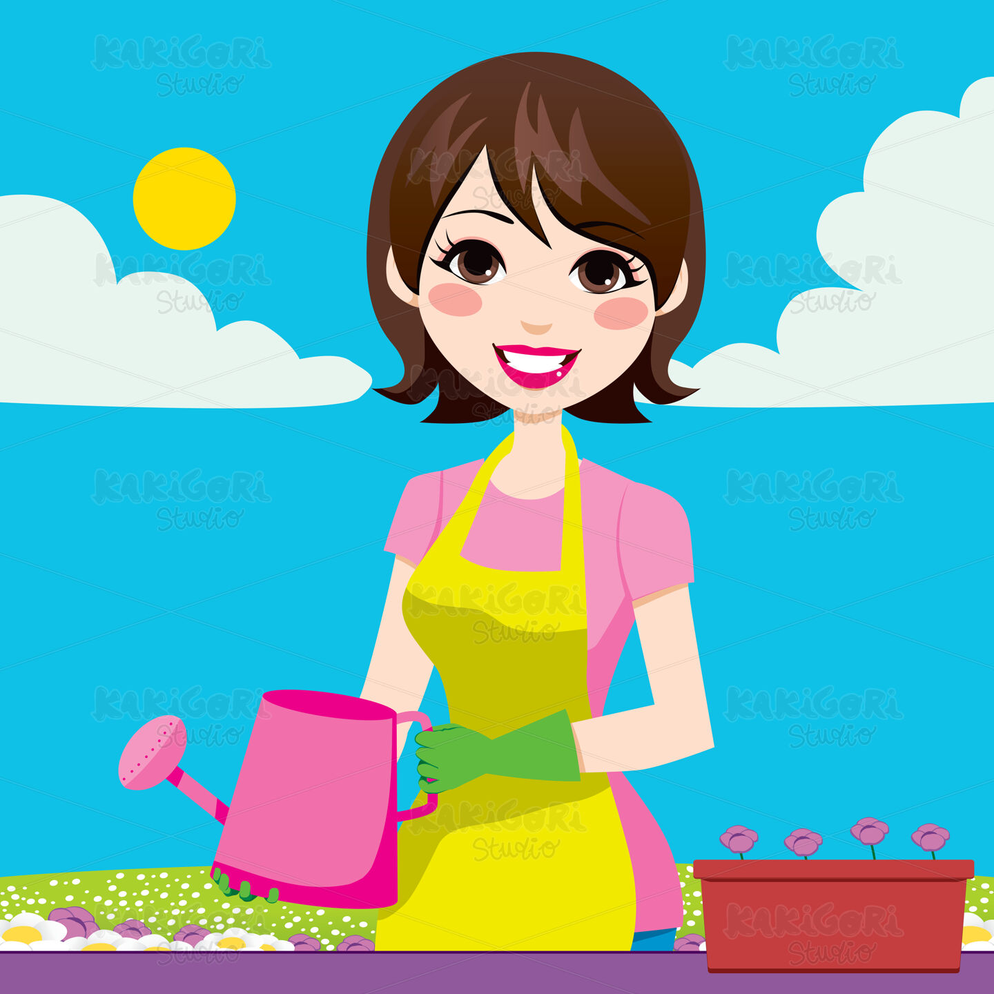 / Woman Gardening Clipart Vector Illustration 00934