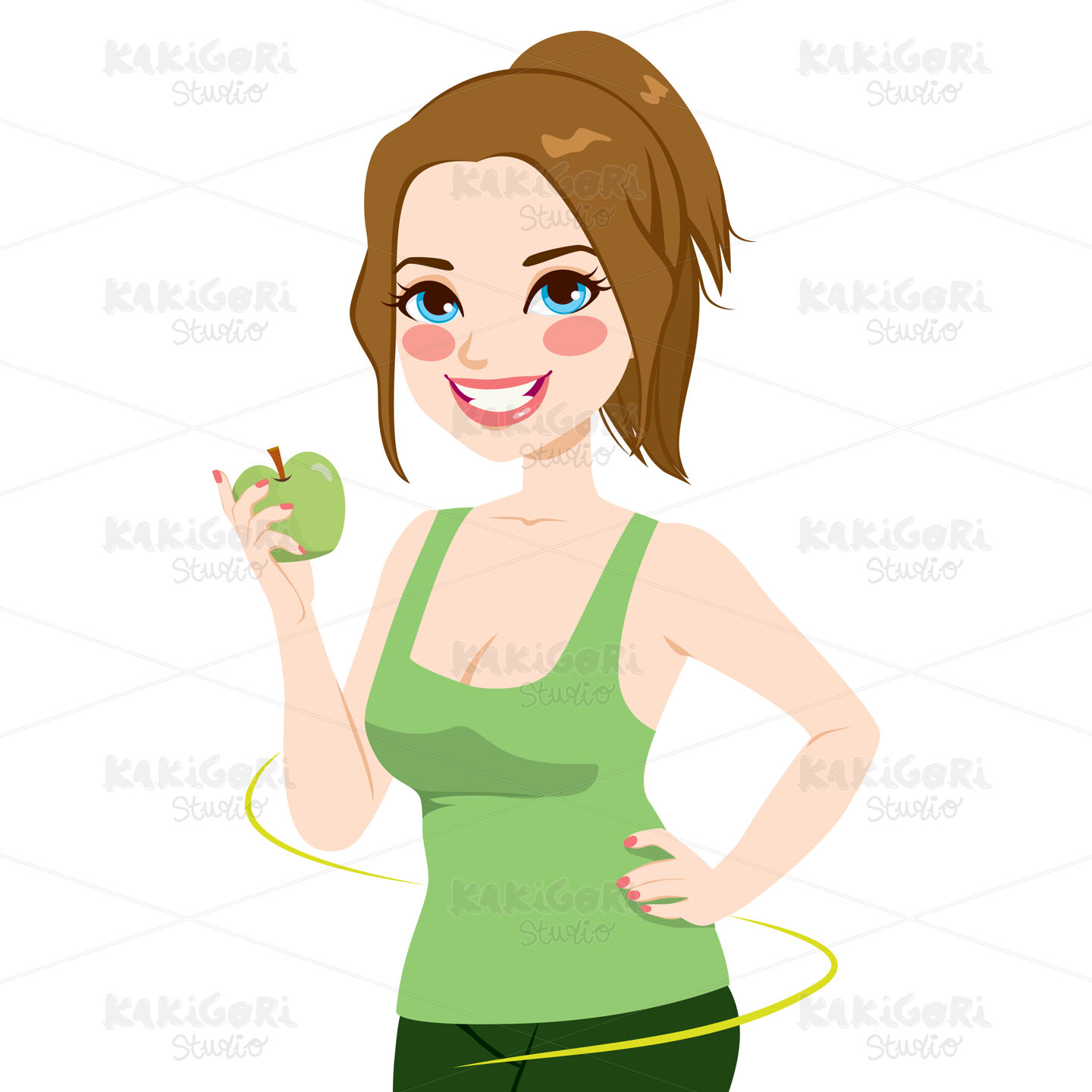/ Woman Healthy Apple Diet Clipart Vector Illustration 01386