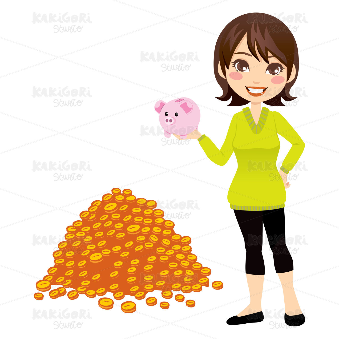 / Woman Holding Piggybank Clipart Vector Illustration 00831