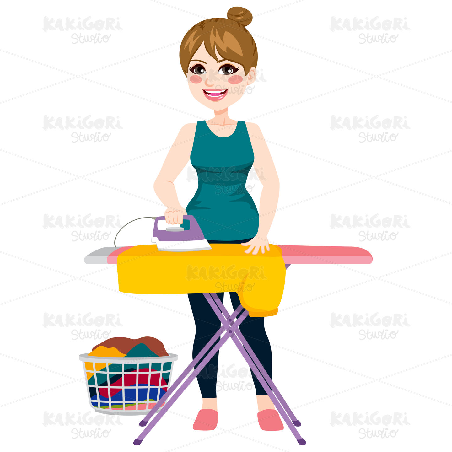 / Woman Ironing Shirt Clipart Vector Illustration 02290