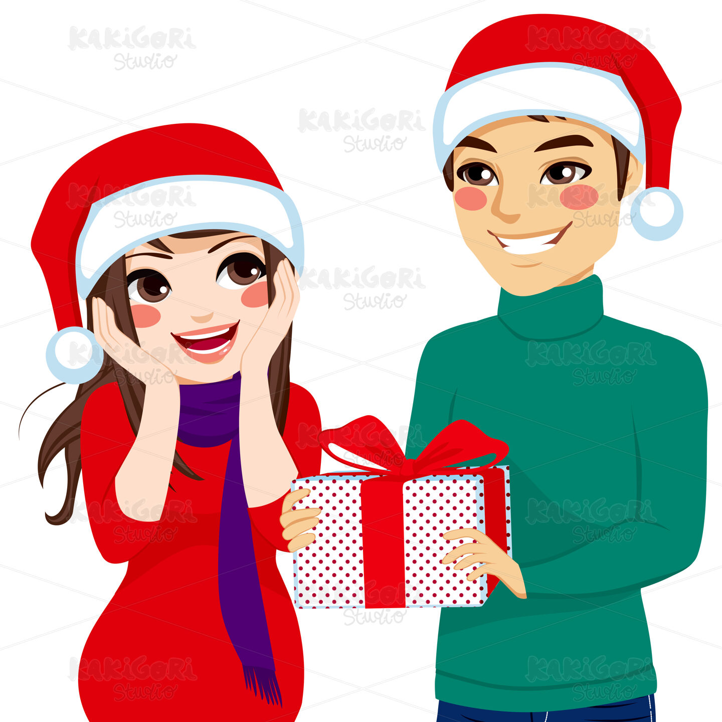 Woman surprised receiving Christmas present from man