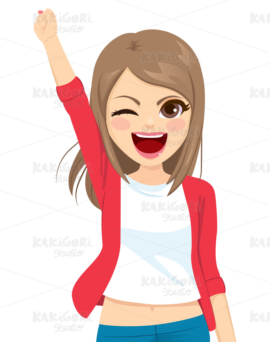 Young woman rejoicing her success and victory clenching fist up with joy celebrating achieving goal concept