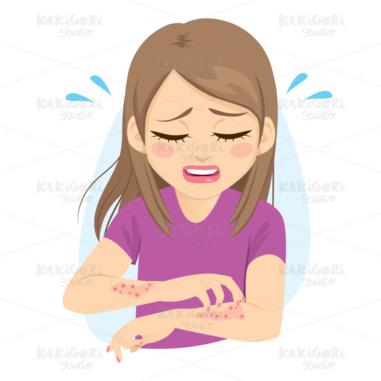 / Woman Scratching Skin Itchy Allergy Clipart Vector Illustration 04976