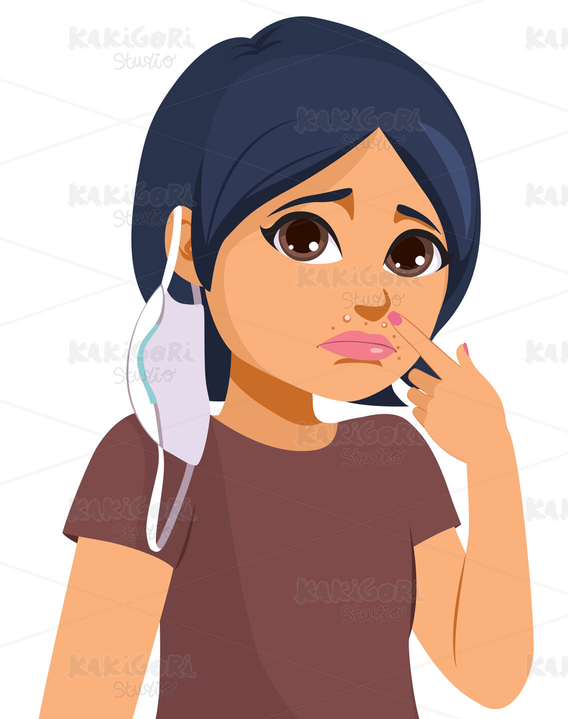/ Woman Skin Problem Medical Mask Clipart Vector Illustration 05337