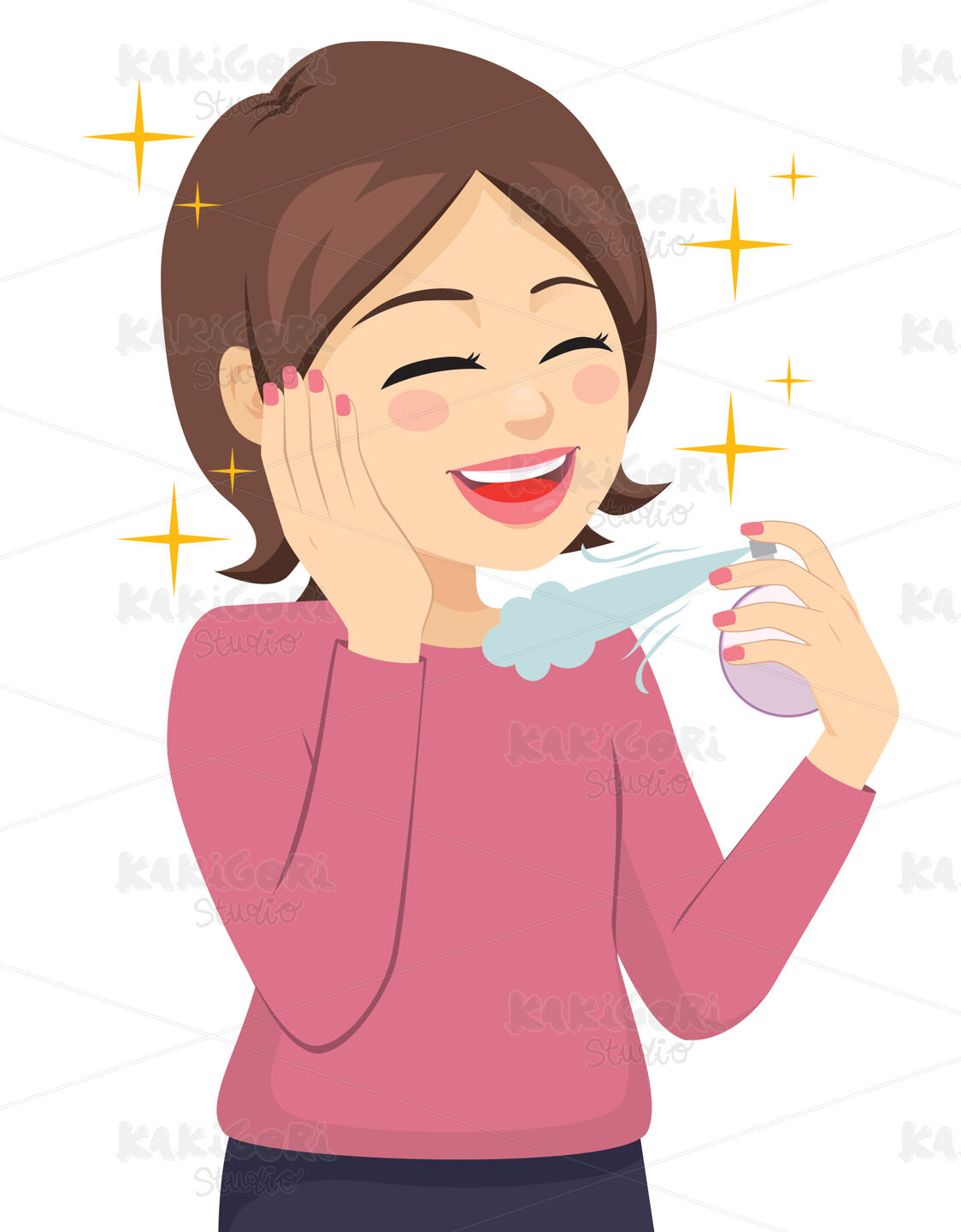 / Woman Spraying Perfume Clipart Vector Illustration 05132
