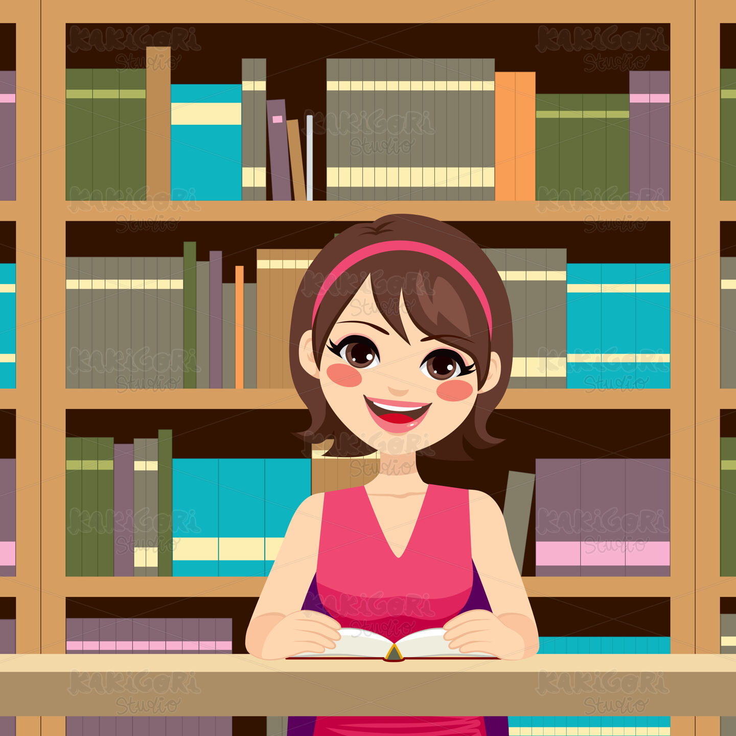 / Woman Studying Library Clipart Vector Illustration 02688