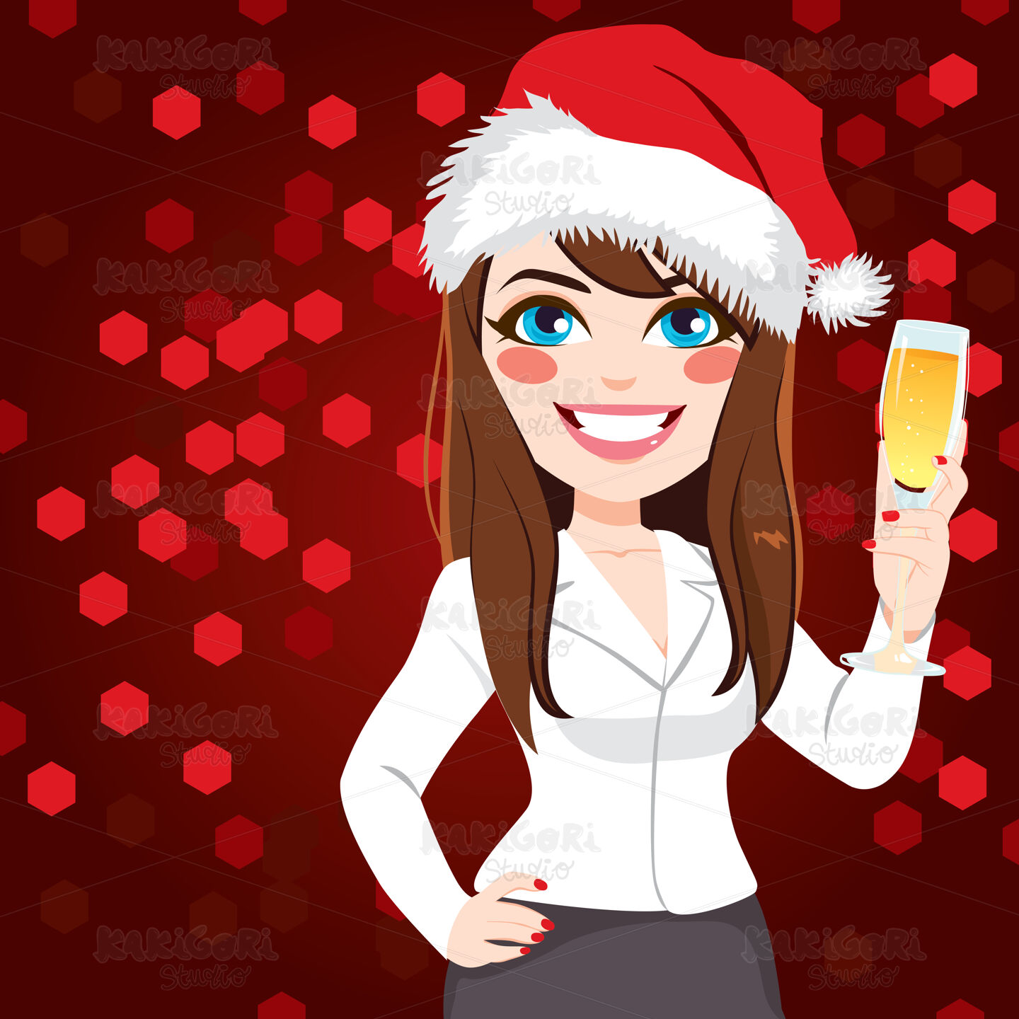 / Woman Toasting Christmas Party Clipart Vector Illustration 03849
