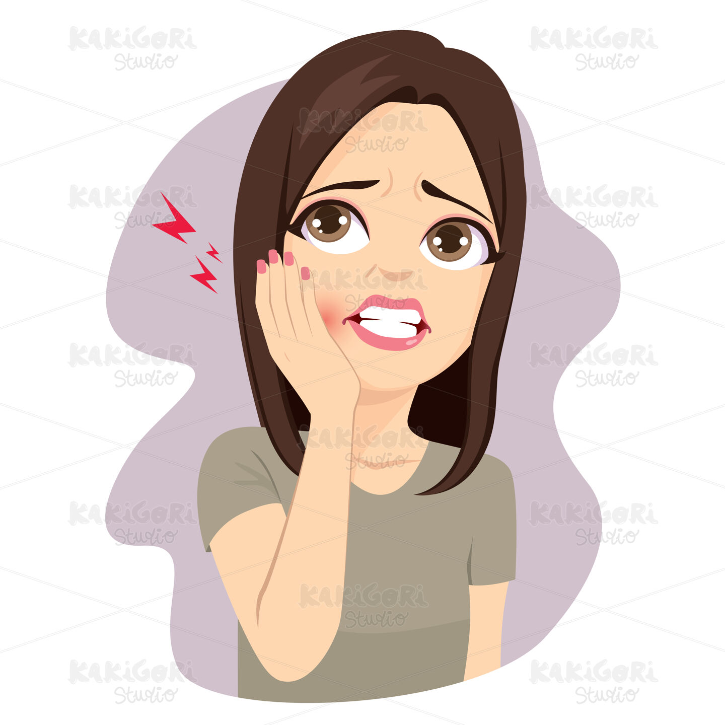 / Woman Touching Cheek Toothache Pain Clipart Vector Illustration 04973