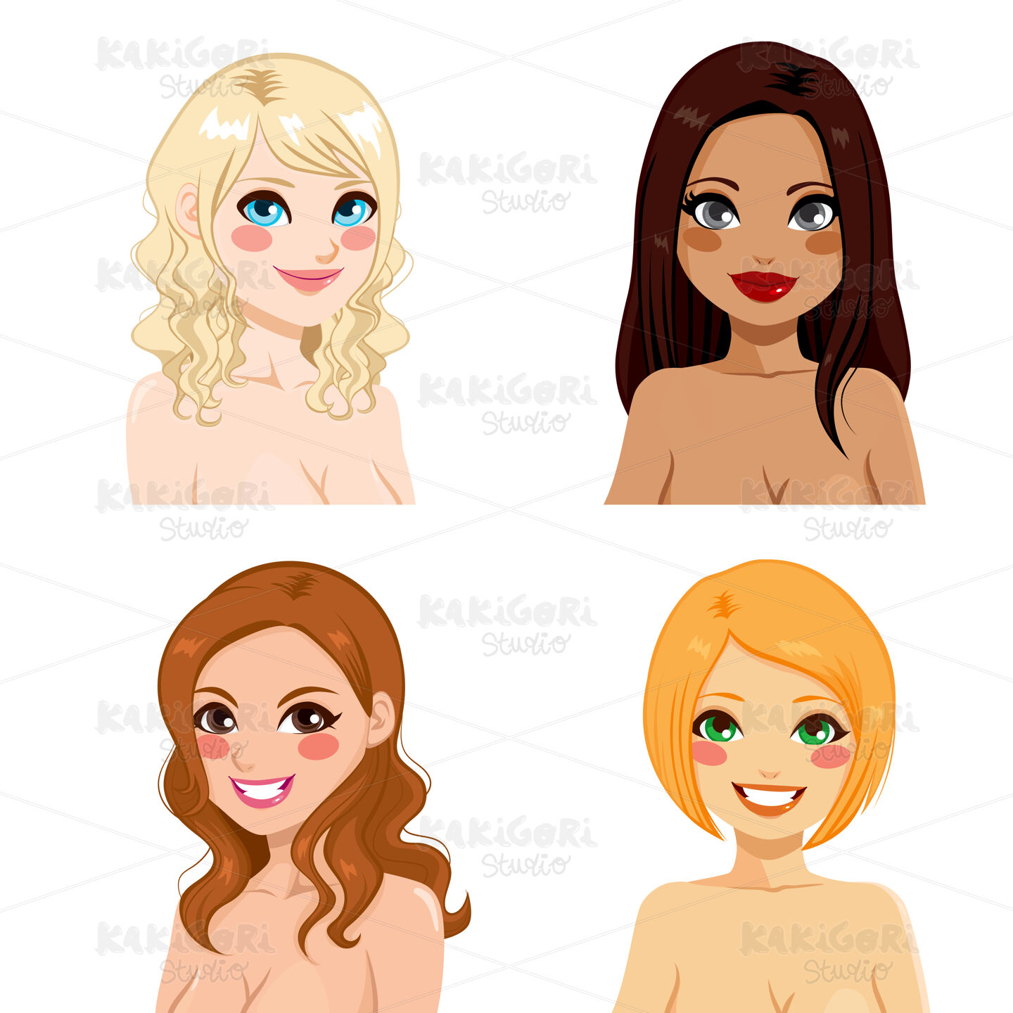 / Women Hair And Color Skin Clipart Vector Illustration 01942