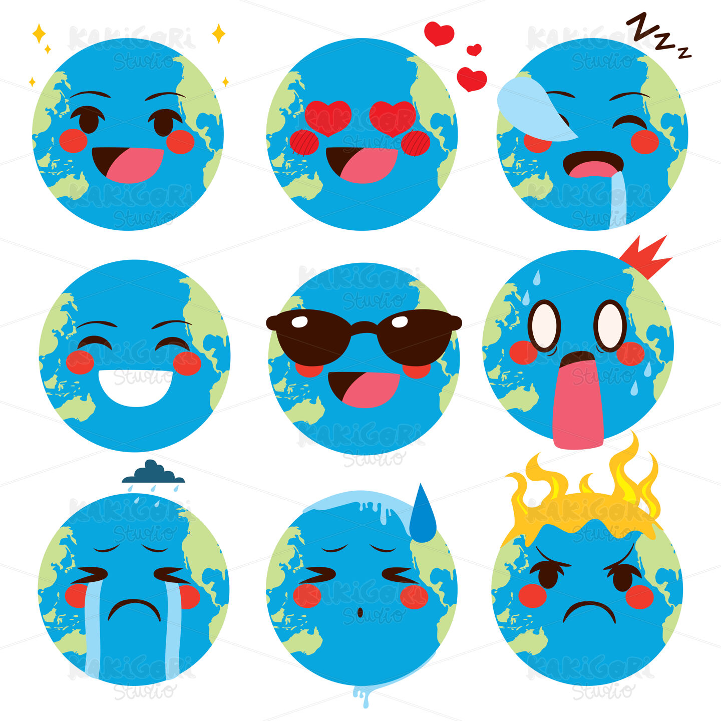 Set collection of cute different world Earth emoji expressions