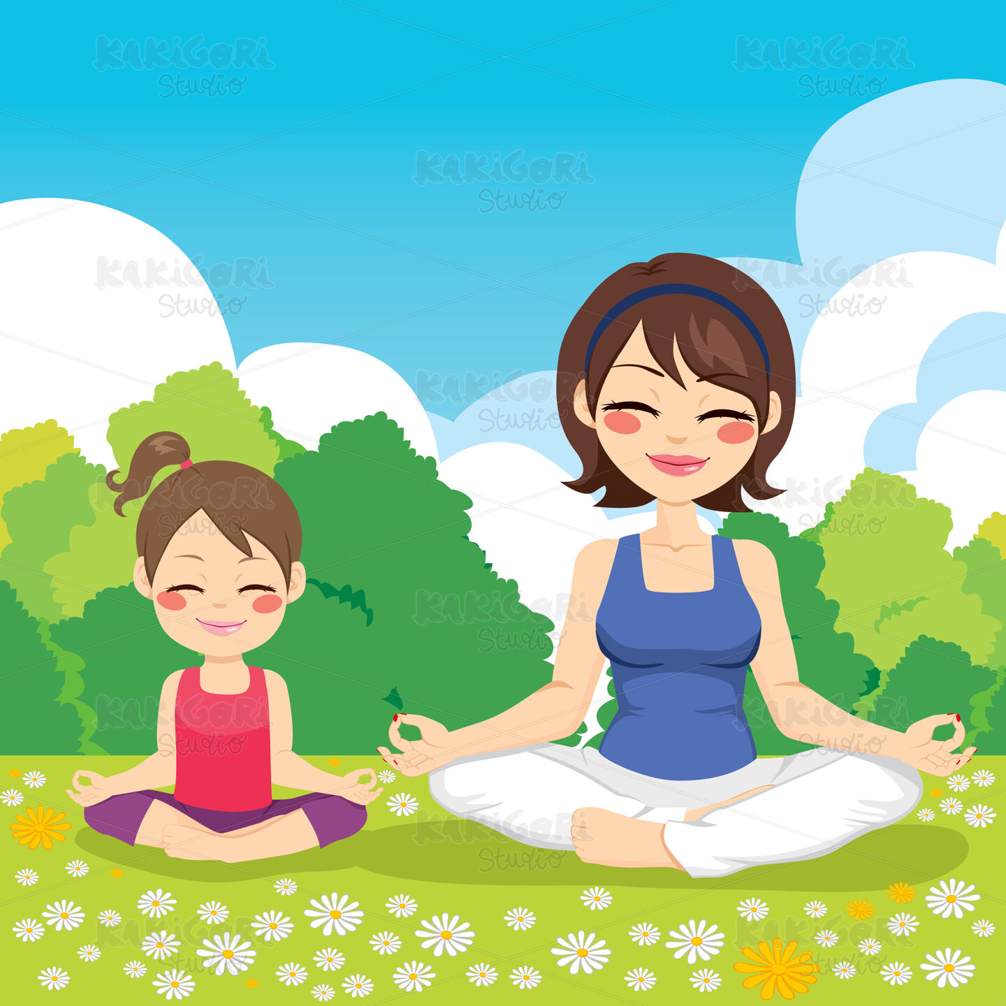 / Yoga Park Mother Daughter Clipart Vector Illustration 02776