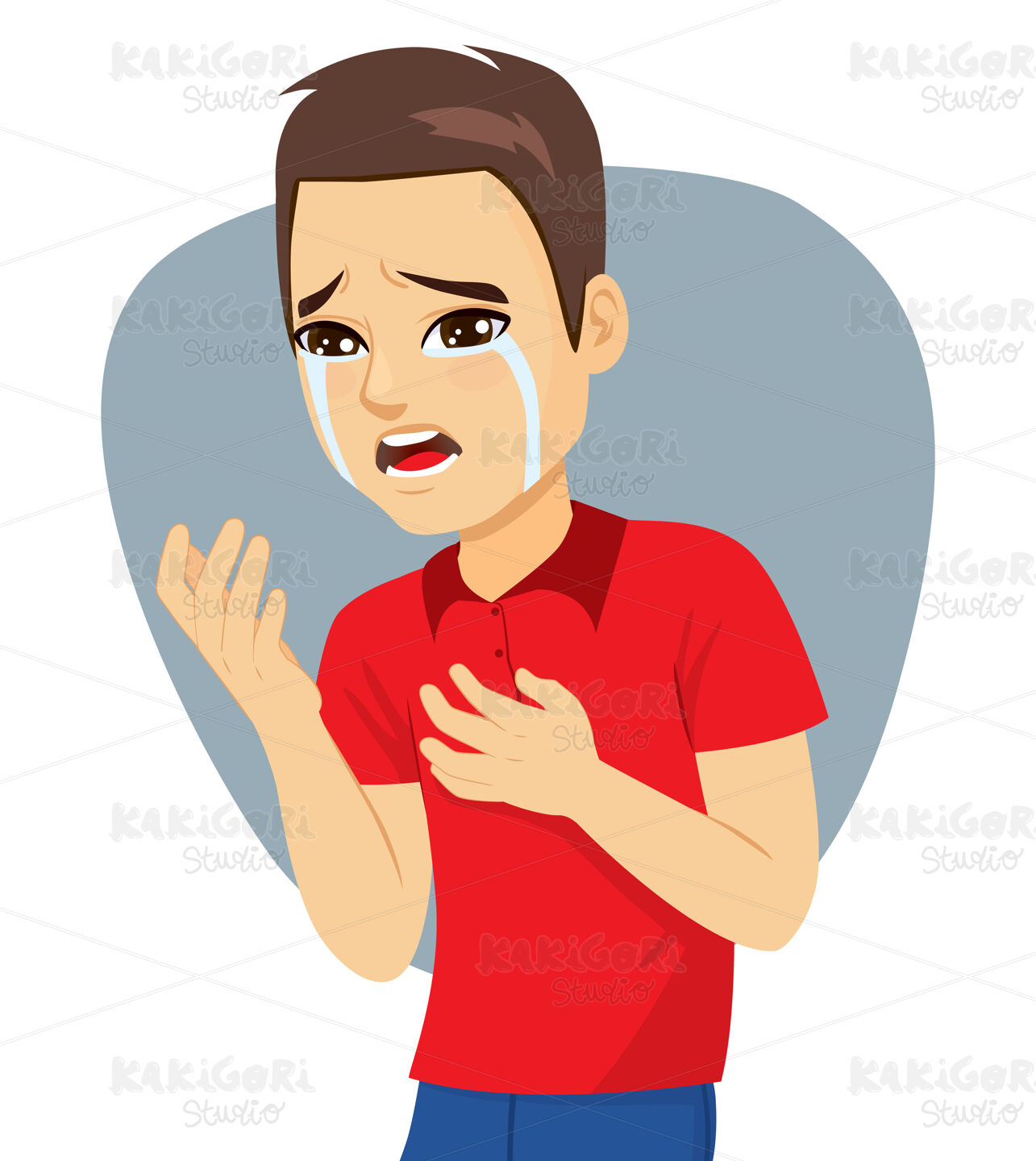 / Young Desperate Man Crying Clipart Vector Illustration 05161
