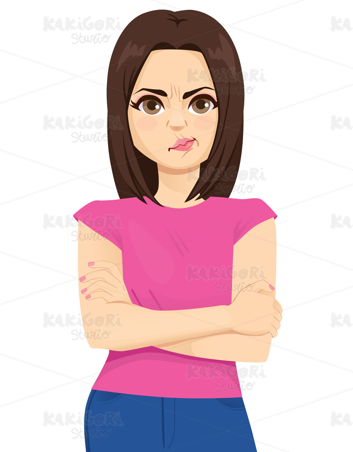 / Young Girl Negative Facial Expression Clipart Vector Illustration 04893