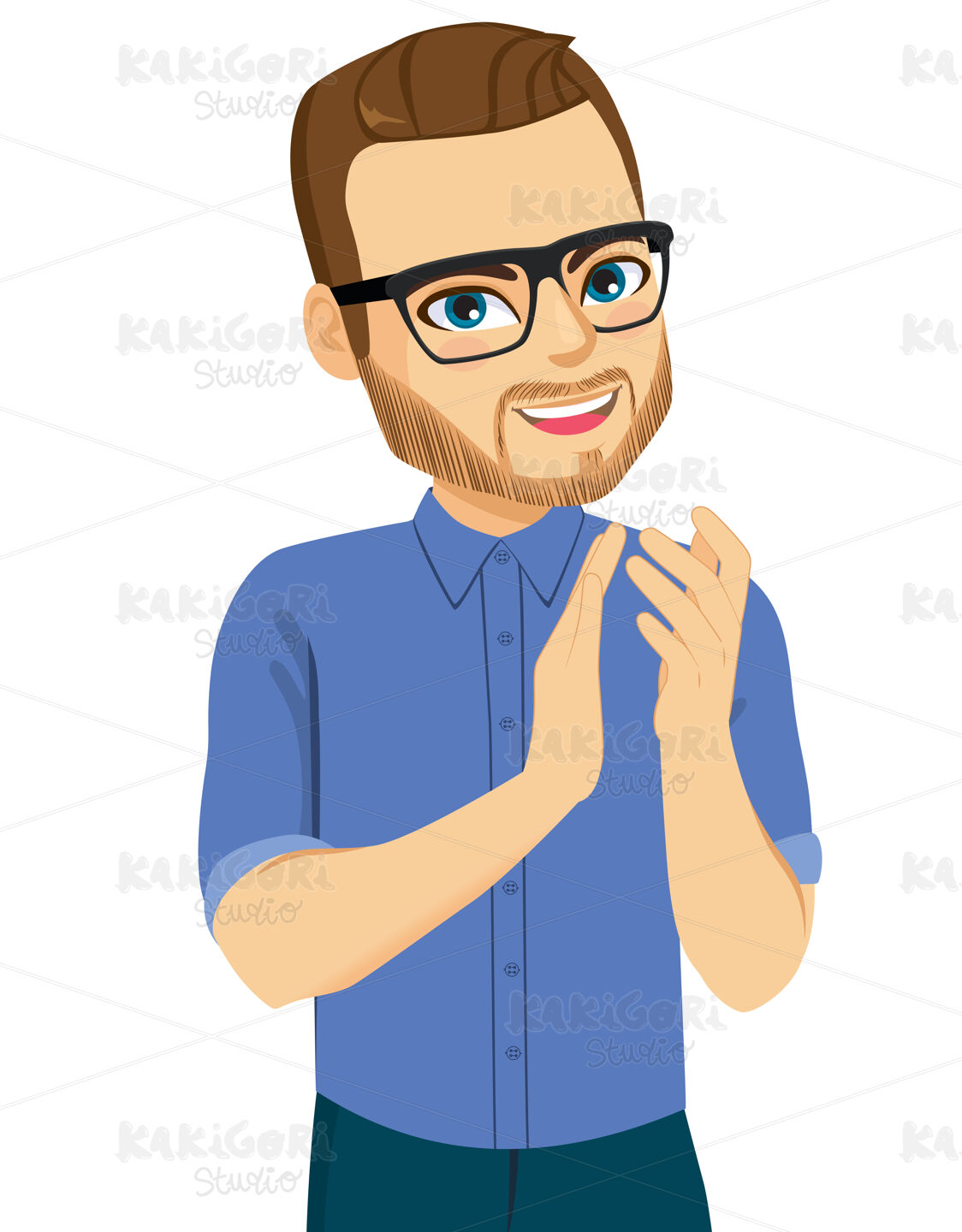 / Young Man Clapping Applause Clipart Vector Illustration 05128