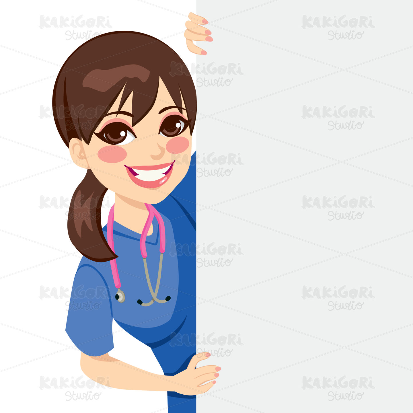/ Young Nurse Peeking Clipart Vector Illustration 01401
